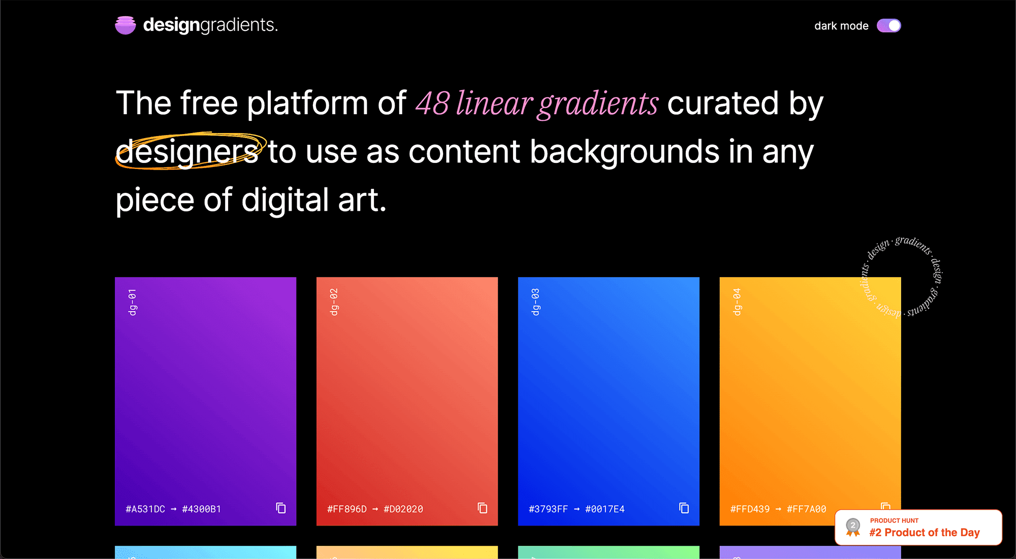 Design Gradients is a straightforward website that showcases a plethora of stunning gradients and their corresponding color hex codes. This is a useful resource if you ever need a background gradient or want to create new gradients for the lighting in your videos.