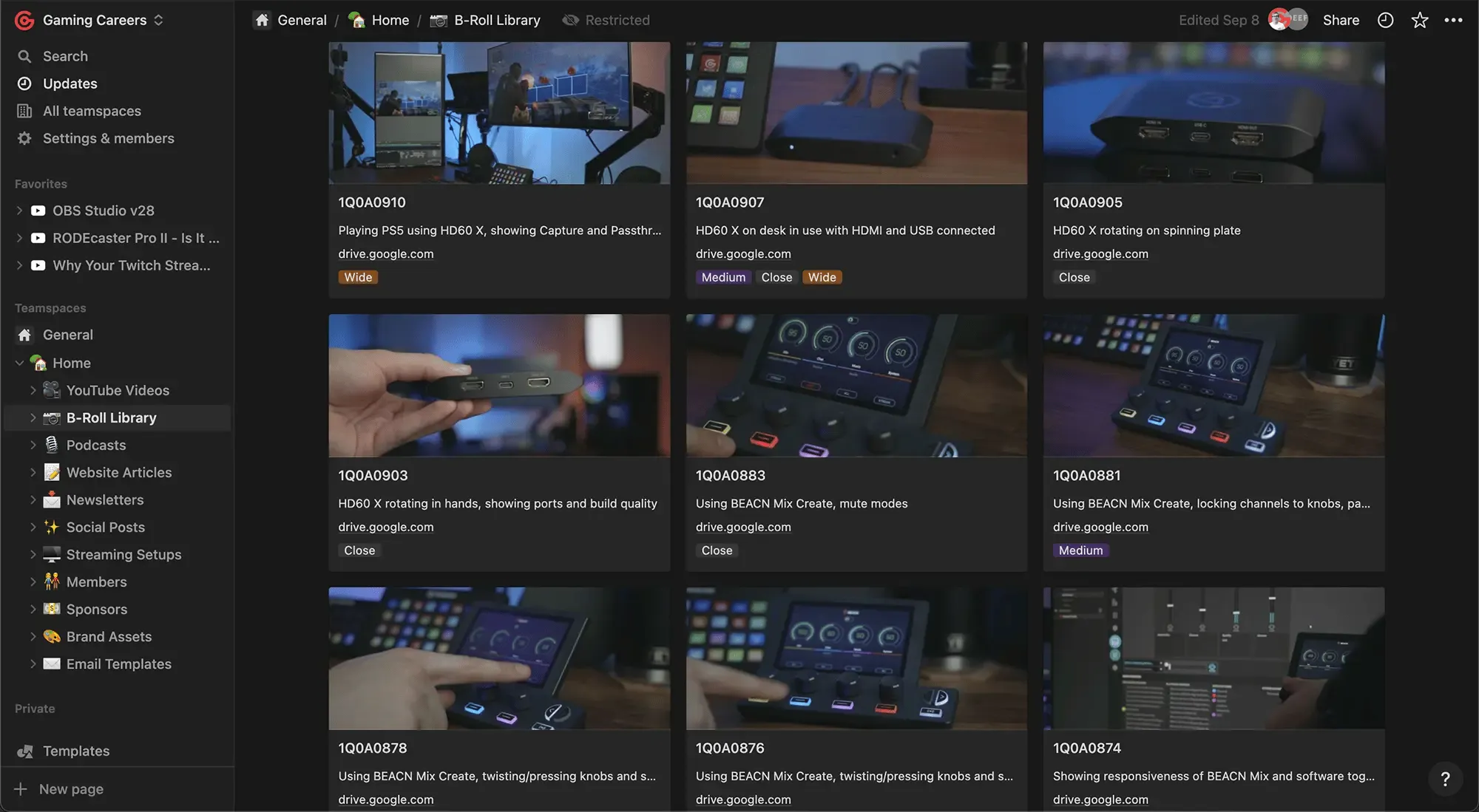 I use Notion to handle all of my work related to Gaming Careers. Whether it’s scripting videos, publishing podcasts, managing B-Roll, or composing a newsletter, I rely on Notion to manage it all.