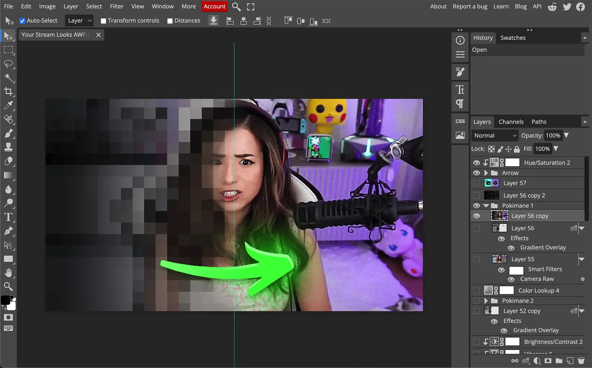 One of the best parts is that it can even open Photoshop PSD files. So if you’ve ever downloaded a stream design or thumbnail PSD file, you can easily open it, edit any layer as you want, and export it, just like you would in Photoshop.