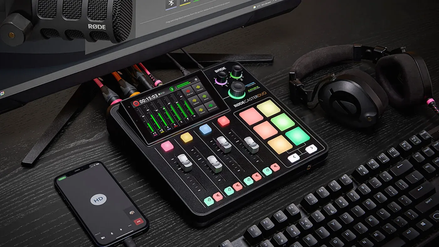 - RØDECaster Duo [20% Off] – Professional two-channel mixing console with preamps, faders, touchscreen, SMART pads, and built-in studio effects.