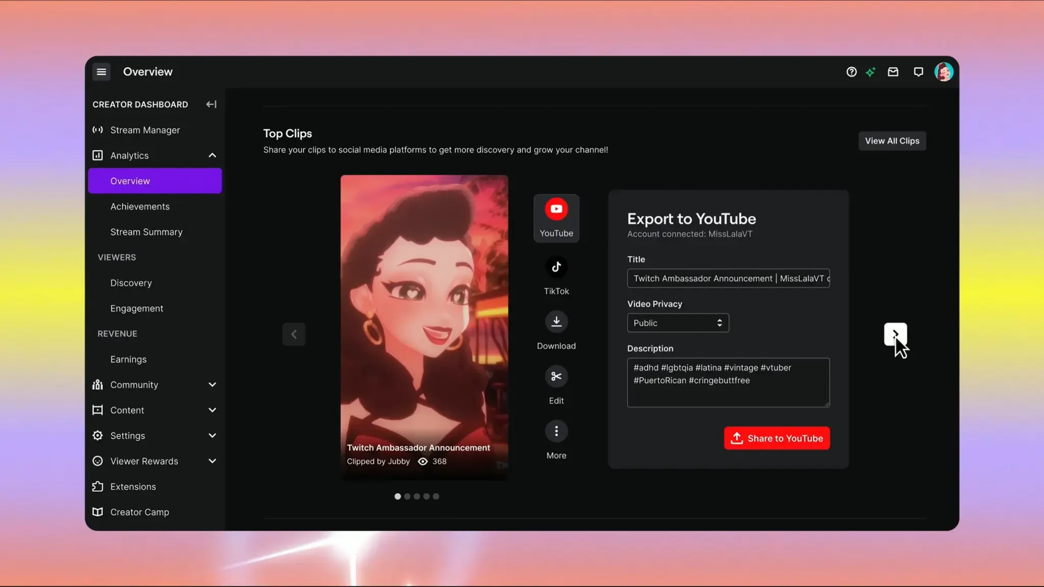 - Clip Carousel: After each stream, you’ll see a carousel of the best clips, ready to be shared on social media.