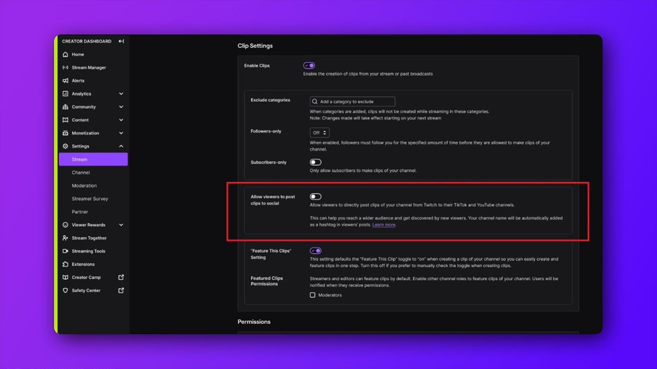 - Share to TikTok/YouTube: Streamers can now enable or disable the ability for viewers to post clips directly to their own TikTok or YouTube channels.