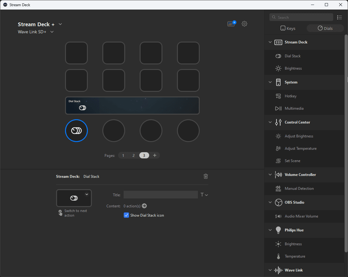 Furthermore, the new dials toggle displays all available dial actions that you can add, making it even simpler to configure Stream Deck Plus to your liking.