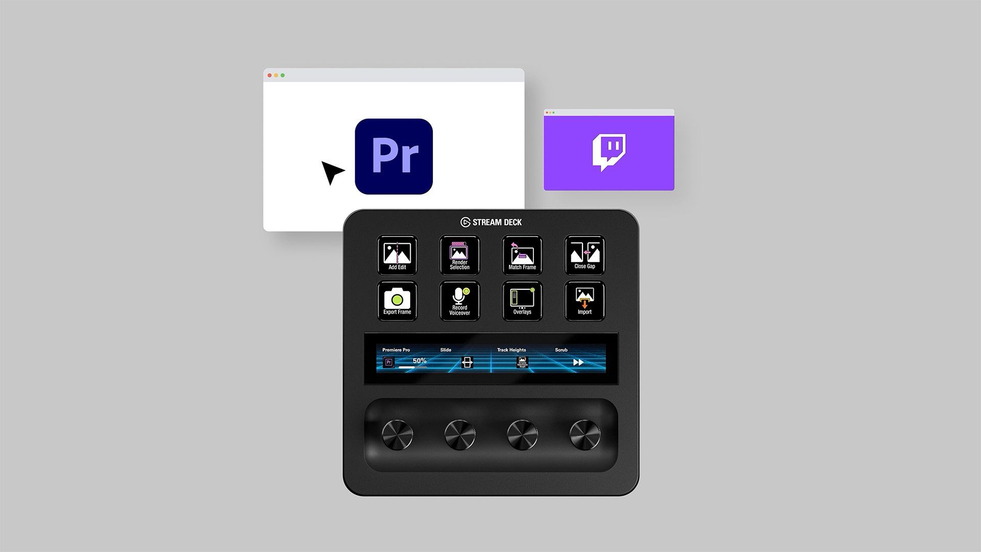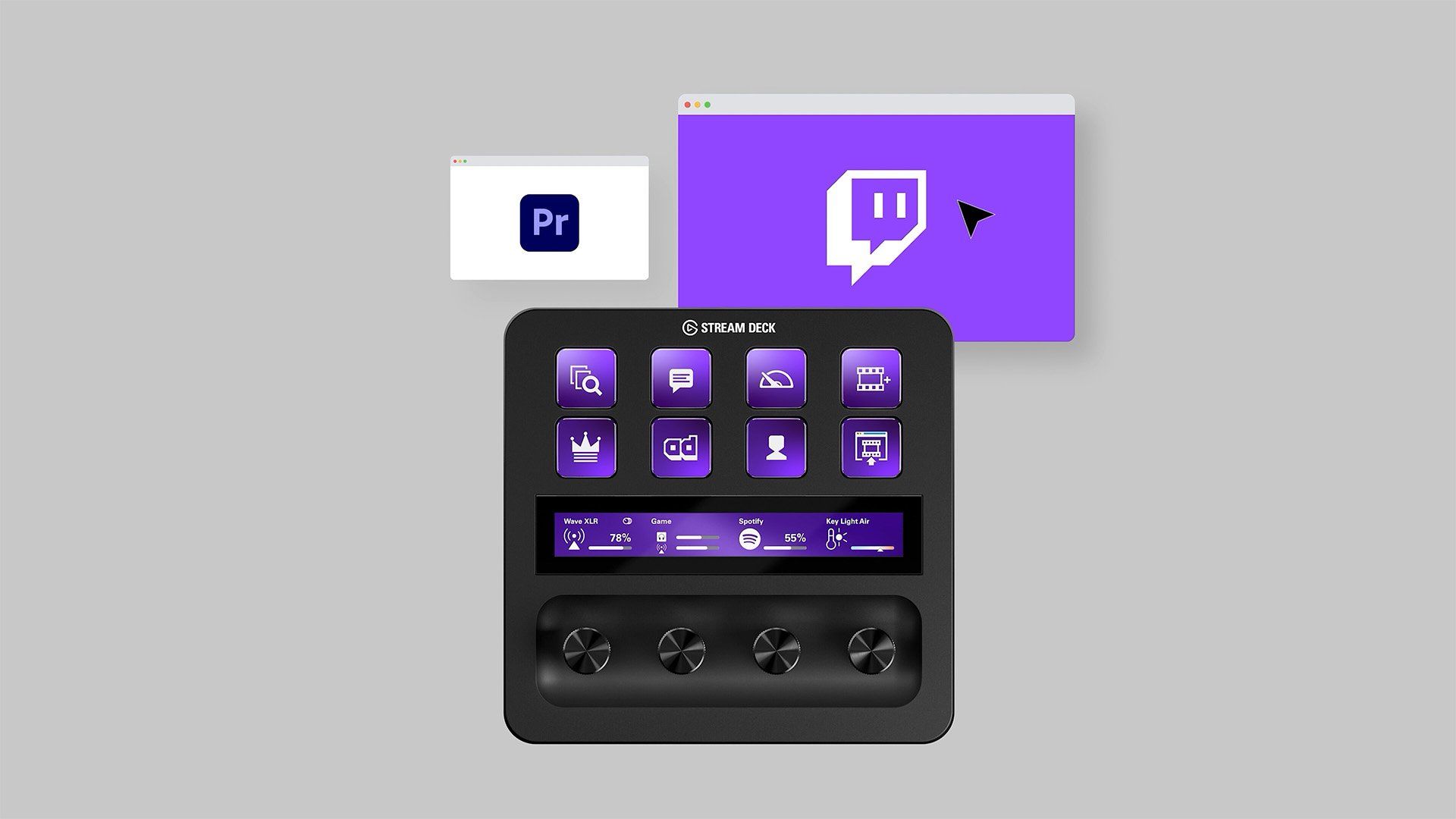 This means that if you’re editing in Premiere Pro, Stream Deck Plus can be set to show one profile of controls. And if you switch to a streaming app like OBS, it can automatically swap to showing all your Twitch controls instead.